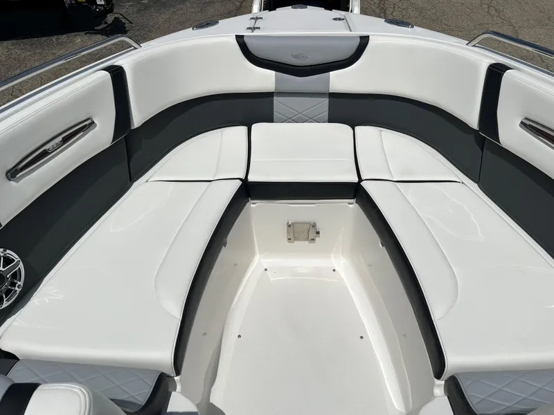 With an overall length of 28', 287 SSX is rapidly becoming a trendsetter within the boating world. Sporting an open and spacious cockpit design outfitted with hinged storage and hand stitched vinyl seating along with the dual 7" touch screen displays embedded within the helm, the 287 SSX is here to make a statement in luxury boating.
