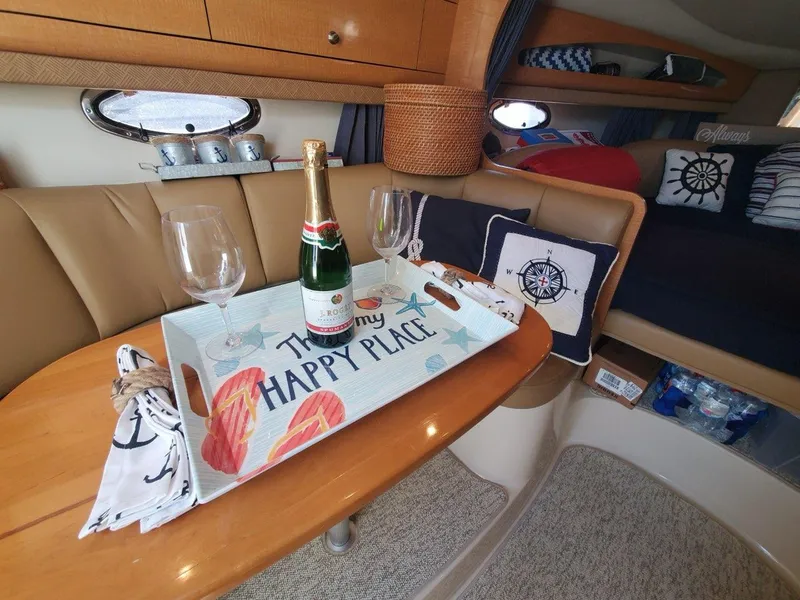 Get ready for summer! Come check out this Gorgeous boat, same owner last 11 years or so. Updated Sea Grass carpet, new isinglass, twin Volvo 5.0's with around 500 hours. Boat was always stored indoors, well maintained. This boat has been well maintained and you'll find her in excellent condition. She has A/C, no generator or trailer. It's located inside our heated storage facility in Sturgeon Bay.