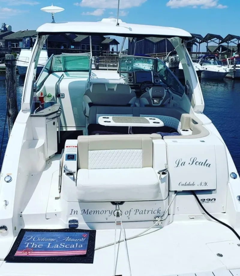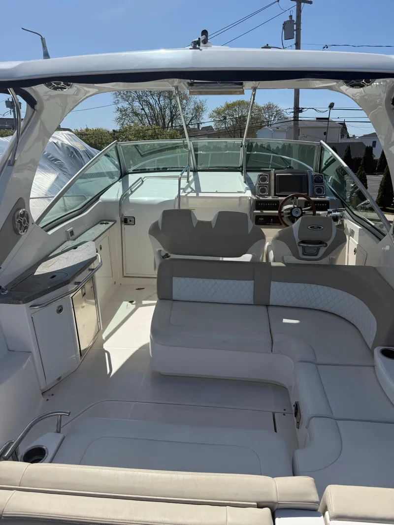 This 33 Signature is powered by twin Merc 350's with under 300 hrs and bravo 3 drives. Custom Dinette Table, microwave, stove top. Kohler generator 5k with 14 hours.