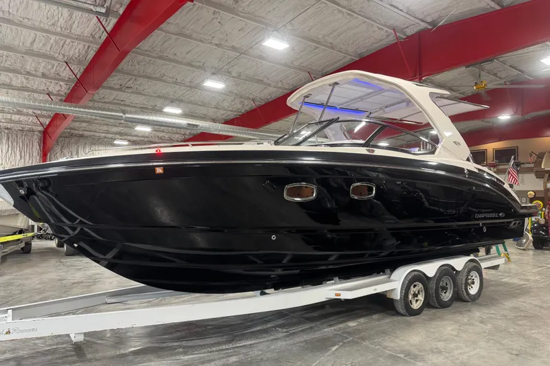 !!! Twin 350 HP Mercury V-8's !!! Only 206 Hours !!! Joystick Docking !!! This is a clean one owner 34 foot Chaparral bow-rider equipped with twin 6.2 L MerCruiser 350 hp V8's, bravo three drives, joystick docking, Bluetooth stereo, windlass anchor, enclosed head, bow and cockpit cover, hard top with sliding sunroof, Electric rear aft shade, Power rear bench seat, bow and cockpit flooring, and more. Price does not include Trailer but we have new available for $12,000. Financing and delivery are available. We accept trades.
