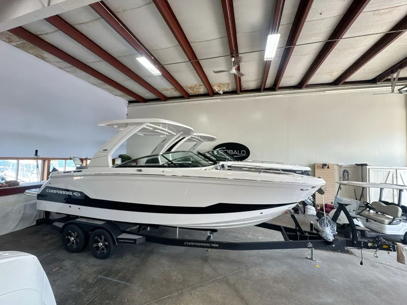 Introducing the all-new 2025 Chaparral 2870 SSX, now available at Krenzer Marine on Sodus Bay - where luxury meets adrenaline on the open water. Powered by a beastly MerCruiser 8.2L engine, this flagship sport boat delivers raw horsepower, smooth cruising, and head-turning performance that sets a new standard in its class. From the moment you step aboard, the 2870 SSX surrounds you with Chaparral's signature craftsmanship and upscale amenities. The expansive cockpit features rich, hand-stitched upholstery, a power-sliding aft lounge, and wraparound seating that invites relaxation and conversation. The helm is a captain's dream, featuring advanced digital controls, twin touchscreen displays, and precision instrumentation all framed within a sleek, modern dash. The bold, integrated HTX hardtop provides excellent protection from the elements while enhancing the boat's aggressive, luxury profile. Below deck, a beautifully appointed cabin offers a comfortable V-berth, enclosed head with vanity and sink, and all the space you need for overnighting in style. Whether you're hosting a sunset cruise, towing water toys, or making a statement at the marina, the 2025 Chaparral 2870 SSX delivers unmatched performance, comfort, and sophistication. Come see it today at Krenzer Marine - and experience the ultimate in premium boating.