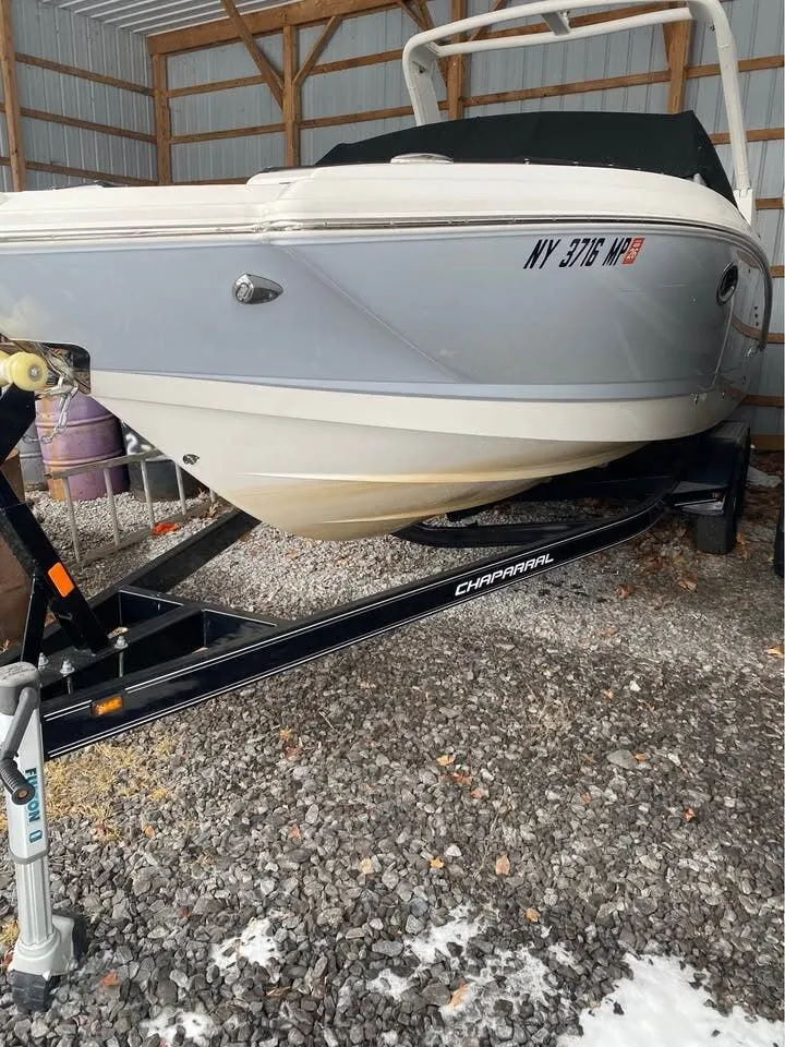 2019 Chaparral Sunesta 244 - Volvo V-8 Power, Luxury Features, and Family-Focused Comfort Overview The 2019 Chaparral Sunesta 244 Bowrider blends high-style design with practical, family-friendly performance. Powered by a Volvo V-8 Gen V 2.14 DP delivering 300 horsepower, this Sunesta model offers confident acceleration, smooth handling, and all-day comfort for water-sport enthusiasts and casual cruisers alike. Built with a premium fiberglass/composite hull with a beautiful alloy gray band and an extended V-plane shape reinforced with Kevlar, it's engineered to deliver a secure, stable ride in a variety of conditions. Key Features: Backlit gauges with dimmer switch for easy visibility after dark Battery on/off switch for simple, quick maintenance Bluetooth AM/FM stereo with Sirius/XM compatibility Built-in anchor locker with anchor retainer Cockpit drainage and self-bailing systems for quick water removal Custom bucket seats with flip-up bolster cushions Enclosed head with porta-pottie and opening port light U-Slide aft lounge converts to sun lounge for versatile lounging Stainless steel bow and stern boarding ladders Stand-up bimini top with windscreen and boot Specifications: Length: 24 feet 4 inches Beam: 8 feet 6 inches Dry weight: 4,400 pounds Fuel capacity: 63 gallons Engine: Volvo V-8 Gen V 2.14 DP 300 HP (Single I/O) Added Options and Upgrades: Wide band alloy gray hull with EFx electric folding arch tower - white Cockpit and bow covers for all-season protection Premium leather bucket seats, leather steering wheel, cockpit table, bow filler cushion Garmin 742XS GPS map for navigation and mapping Head cabinet and sink; VHT Vacuflush system Beach-weave snap-in floor covering for a durable, stylish deck Cockpit and bow covers to keep the boat showroom-fresh Why Choose the Sunesta 244? Balanced blend of sport performance and lounge comfort Luxurious interior with versatile seating and premium finishes Extensive standard equipment plus valuable, ready-to-go options