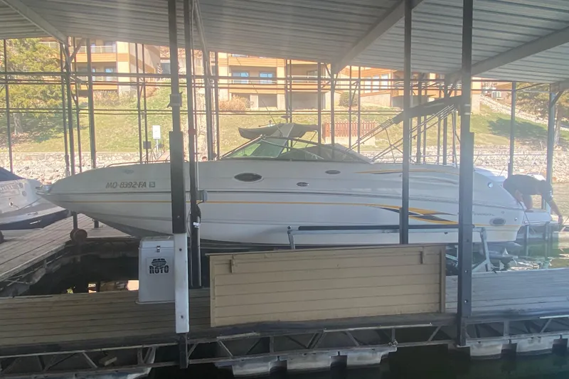 The Chaparral Sunesta 263 with 248 hours, blends sportboat styling with the features and cockpit space that only the ultimate deckboat can provide. It's an unbeatable combination. The Extended V-Plane hull ensures top-notch performance. A center walk-through transom door allows easy access to a U-shaped cockpit designed to accommodate plenty of family and friends. Always kept on a lift here at Lake of the Ozarks. Full enclosures. The 8.1 Gi Volvo Penta engine and DP drive have been serviced by Big Thunder Marine, services are up to date and ready to go.