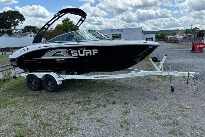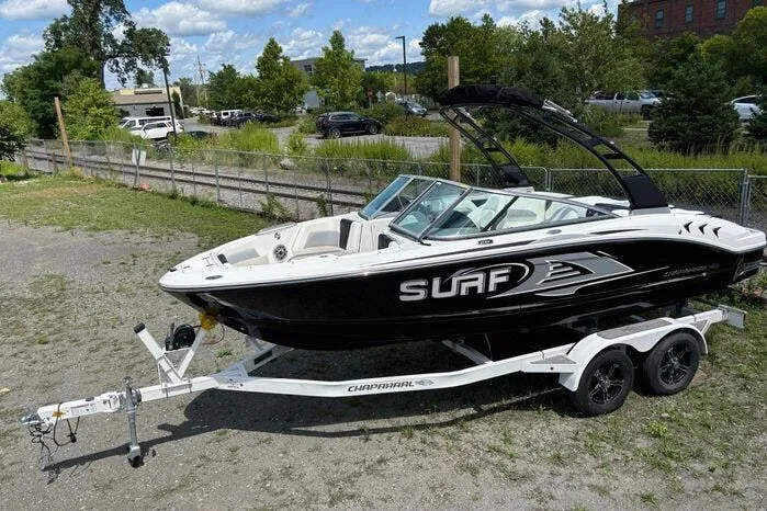 2024 Chaparral 21 Surf - Ultimate Wakesurfing Adventure in Style The 2024 Chaparral 21 Surf brings together the sleek sophistication of the SSi line and the thrilling performance of the Surf series. Powered by a Mercruiser 4.5L DTS 2.20 Bravo Four S 250HP Catalyst, this boat is built to create the ultimate on-water experience, delivering premium power and cutting-edge wakesurfing technology. Key Features: Gel Coated Entire Hull - Black with striking Power Wave Graphic Luxurious Cockpit Interior - Black and Standard Canvas - Black Folding Velocity Arch Tower - Black, adding style and function Cockpit and Bow Cover for protection and aesthetics JL Audio Sound System Upgrade with a Transom Stereo Remote for premium audio on the go Comfortable Snap-In Seadek Cockpit Flooring - Slate and a Swim Platform Logo Mat for added traction and style Wakesurfing Innovation: Malibu Surf Gate™ Technology for instant wake adjustments without repositioning the boat Simrad Multifunction Touchscreen Display for effortless control of your ride and performance Custom Molded Fiberglass Dash with a hand-stitched vinyl-wrapped visor and Isotta Evoq Steering Wheel for an advanced, luxurious helm Perfect for wakesurfing, wakeboarding, and cruising with ease Premium Comfort & Style: Air Pump and Anchor - Galvanized for convenience on the water 5-Year Premier Level Limited Component Warranty for confidence and peace of mind Trailer - White Frame with White Fenders and Aluminum Wheels for easy transport Performance and Technology Combined: The Chaparral 21 Surf delivers world-class surf performance with its Volvo Forward Drive and innovative wake control systems. The helm's advanced Simrad Touchscreen Display keeps critical data like engine performance, fuel level, and depth easily accessible, ensuring a smooth and enjoyable ride every time. Whether you're new to wakesurfing or a seasoned enthusiast, the 2024 Chaparral 21 Surf will take your water adventures to new heights. Experience the thrill, style, and performance of this incredible vessel-secure yours today and make every day on the water unforgettable!