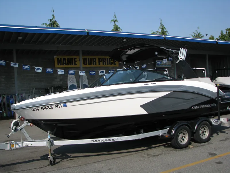 If you didn't believe in love at first sight before, with this PRE-OWNED 223 VRX you certainly will now. Chaparral put all the savvy we've learned about boat building in the last 50 years into the 223 VRX. The end result is a masterful family jet boat that's priced right, built right and this one has the optional wake/surf package! . Twin engine performance speeds you to new levels of excitement. Talk about an adrenaline rush. Heart-pounding acceleration. On demand power. Efficient cruise control. Eye-watering top-end. Onboard, you'll bask in the spaciousness of a bow area that allows you to sit, dine or recline. At the opposite end of the spectrum, the best-in-class swim step area is designed for the kids to blast off no matter what water sport is on the agenda. A huge integrated platform features hinged aft-facing seats, a slip-resistant non-skid mat surface and a three step boarding ladder that stows in a hideaway compartment.