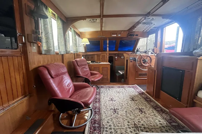 What makes this a special boat, and worth considering for purchase, are price and condition! A June 2023 Survey estimated the fair market value of this boat above $100,000. There is a custom-built aluminum flybridge enclosure with all the navigation electronics and real windows.