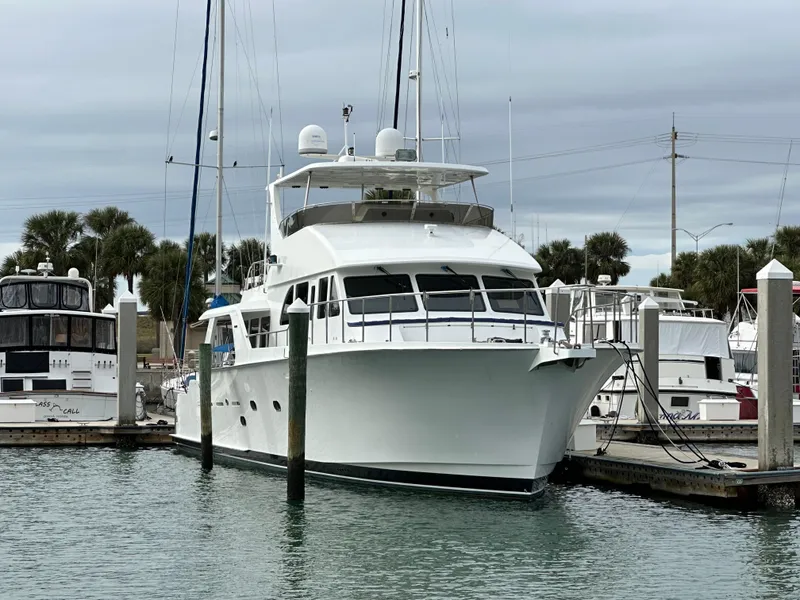 2004 Cheoy Lee 72' Raised Pilot House motor Yacht. Has twin Caterpillar C18's 1000 hp. Approximately 3300 hours. All maintenance has been done and engines run perfectly. This yacht has just completed a major refit, pretty much too top to bottom, all upholstery and systems. Just completed a 1400 mile journey through the Caribbean and is now in Cape Canaveral Florida. This boat was built for very extended cruising and is built like an absolute tank! It has redundancy for most major components. Twin generators, twin fresh water systems, Twin water makers, twin hot water heaters. Carries 2200 gallons of Diesel and 500 gallons of fresh water. Has a built in fuel polishing system and fuel transfer system. 3 staterooms and 2 crew quarters. Comfortably sleeps 9 people. Brand new state of the art Garmin electronics, Garmin auto pilot and Radar. Brand new outside kitchen and TV and is ready for entertaining, cruise at 16 knots and tops out at 24 knots or more depending on load. Price is 1.2 million and also fractional ownership available. Call for more information. Yacht is ready to enjoy and needs nothing.