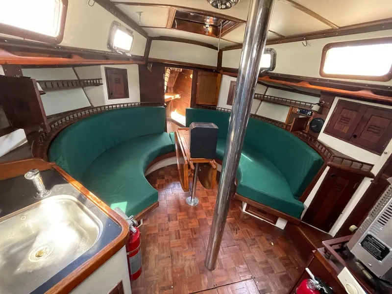 This vessel is loaded with storage, featuring deep lockers, cabinetry, and cleverly designed compartments throughout-more than enough space to support long-distance cruising or full-time living aboard. A dedicated navigation station and generous main salon round out a layout that is both functional and comfortable.
