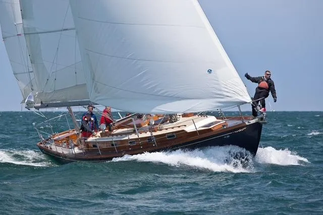 "Instant Karma" is a classic example of legendary naval architect Bill Luders' design genius, built to win the Bermuda Race and proven in competition with multiple Figawi Race top three finishes, including a first-place trophy in her class. The boat is uniquely suited to the choppy waters of Nantucket Sound with her full keel, heavy displacement and multiple sail configurations. Electric primary winches and raymarine autopilot allow for a small crew and even single handling. Airconditioning, two heads and three cabins make for great summer cruising. Boat was completely refit to like new condition by Crosby Yacht Yard in 1998. This polished yacht combines the classic beauty of a traditional wooden yacht with the security and low maintenance of fiberglass construction.