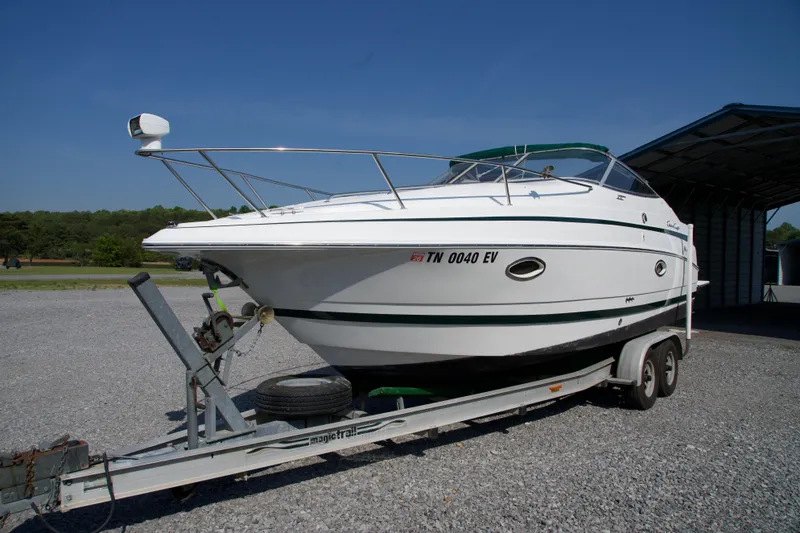 Introducing the 2000 Chris-Craft 245 Cuddy, a stunning example of a used cruiser that combines style and performance. With an overall length of 24.4 feet, this vessel boasts a sleek fiberglass hull designed in a Deep Vee shape, ensuring smooth navigation and stability on the water. Powered by a robust 280 hp Volvo 5.7 inboard/outboard engine, this boat is perfect for both leisurely cruises and spirited outings. With only 650 hours of use, it promises reliability and enjoyment for years to come. The 245 Cuddy is equipped with essential features, making it a great choice for day trips or weekend getaways. Its thoughtful design and craftsmanship reflect the quality that Chris-Craft is known for, making this boat a fantastic option for those seeking adventure on the water. Experience the perfect blend of comfort and performance with this exceptional cruiser.