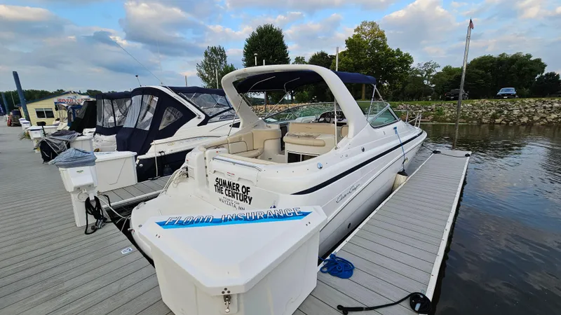 2000 Chris Craft 328 Express Cruiser Powered by Twin 5.7L GS Volvos with Only 757 Hrs - Air Conditioning/Heat, Kohler 5K Generator (209 Hrs), Windlass Anchor, Full Canvas Enclosure (New Front and Side Isinglass), Extended Swim Platform, Cockpit Freezer, Cockpit Carpeting, New Bottom Paint, BBQ Grill & More!