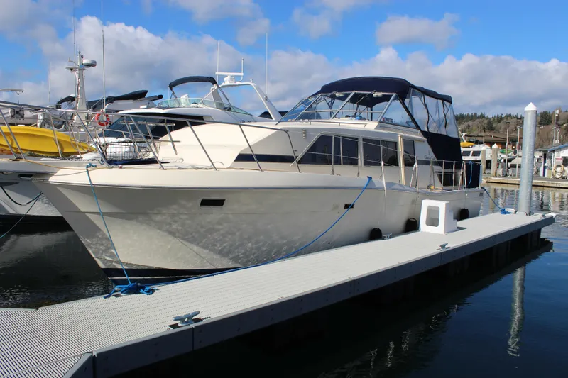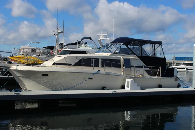 1987 Chris-Craft 381 Catalina, a stunning aft cabin vessel that perfectly blends comfort and performance. With an overall length of 38 feet, this boat features a robust fiberglass hull designed in a deep vee shape, ensuring a smooth and stable ride on the water. Powered by a Chevy 454 inboard engine, delivering an impressive 330 horsepower, this vessel is equipped for both leisurely cruising and spirited adventures, achieving a cruising speed of 10 knots. The electric windlass enhances convenience, making anchoring effortless. Accommodations include two well-appointed cabins and two heads, providing ample space for relaxation and privacy. The thoughtful design and quality craftsmanship of the Chris-Craft brand shine through, making this boat a fantastic choice for those seeking a reliable and stylish maritime experience. Whether for weekend getaways or extended voyages, the 381 Catalina promises to deliver unforgettable moments on the water.