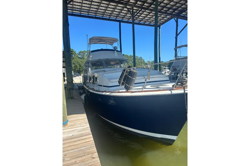 Classic lines. Spacious layout. Liveaboard-ready. This 45' beauty features twin Detroit 8V71 engines, updated interiors, flybridge with 360° views, and a roomy saloon perfect for entertaining or relaxing. Brazilian Cherry floors, cold-blowing ACs, and a recently serviced generator make this a standout. 2 staterooms | 2 heads | Full galley | Wine cooler Survey available for serious buyers. Cruises smooth at 8-9 knots with no smoke.