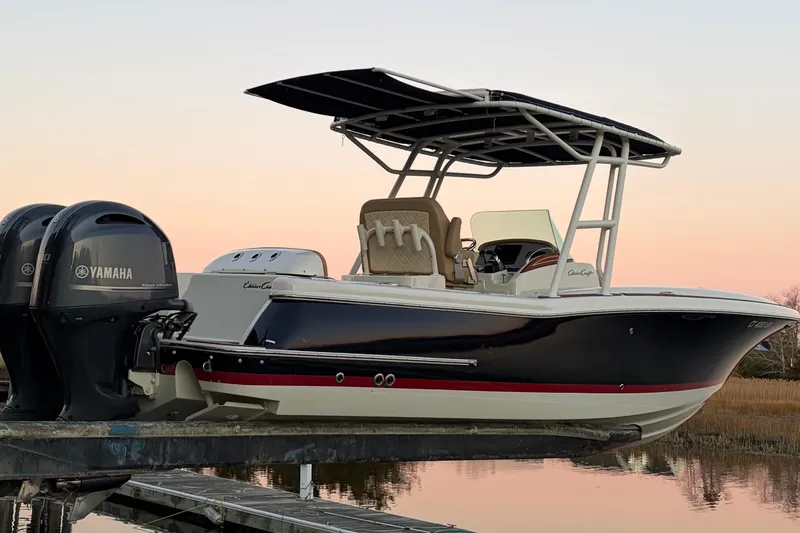 Designed to balance classic Chris-Craft styling with modern performance, the Catalina 26 is equally at home cruising, entertaining, or enjoying a full day on the water. Powered by twin Yamaha F200 outboards with approximately 250 hours, this boat delivers smooth, responsive performance and proven reliability. The deep-V fiberglass hull provides a confident, comfortable ride, even when conditions pick up. With generous seating, smart storage, and a layout that allows easy movement throughout the boat, the Catalina 26 is built for long days on the water without sacrificing comfort or style. This is a well-equipped, turn-key example of a highly sought-after model.