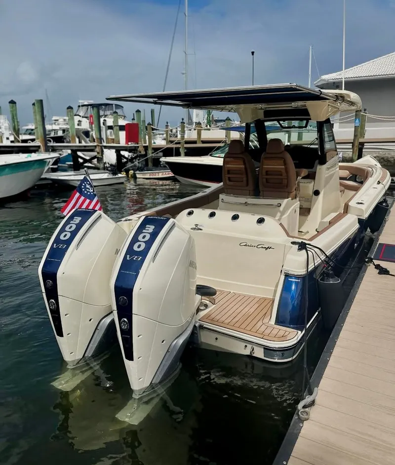 Give us a call for more information on our Chris Craft Catalina 31, Premium materials and handcrafted details elevate every moment on the water, ensuring ultimate comfort, style and performance. Thoughtfully designed storage solutions, plush seating, and innovative technology make the Catalina 31 the perfect companion for any adventure. Complete with a generous berth and head, you have the freedom to turn your days on the water into overnight excursions.