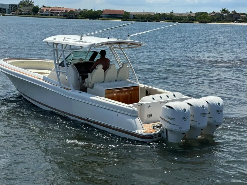 The flagship Catalina 34 is a center console unlike any other. Loaded with luxuries, its expansive bow seating, fold-away aft seating, and a spectacular berth for 2, make it equally at home as a cruiser or as a comfortable weekender. The wide beam accommodates three-across seating at the helm, and a well-equipped summer kitchen serves dinner for 14 guests. When you choose to getaway, it's fully prepped for the perfect escape.