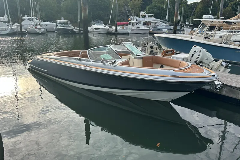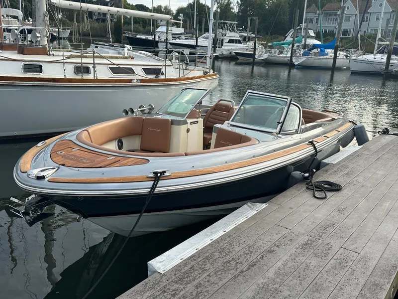 Classic Design: The Launch 25 features a timeless, elegant design that reflects Chris-Craft's rich heritage. Its sleek lines and quality craftsmanship make it a standout on the water. 2. Versatile Performance: Equipped with a powerful engine, the Launch 25 delivers impressive performance, whether you're cruising, waterskiing, or enjoying a leisurely day on the water. 3. Comfortable Seating: The boat offers ample seating for family and friends, with plush upholstery and strategically placed lounge areas that enhance the social experience on board. 4. High-Quality Materials: Chris-Craft is known for using premium materials, and the Launch 25 is no exception. The wood accents and stainless-steel fittings provide durability and a luxurious feel. 5. User-Friendly Features: The boat comes equipped with modern amenities, such as a well-designed helm with intuitive controls, making it easy for both seasoned boaters and newcomers to navigate. 6. Storage Solutions: The Launch 25 includes several storage compartments, allowing you to keep your gear organized and out of the way while maximizing space on deck.
