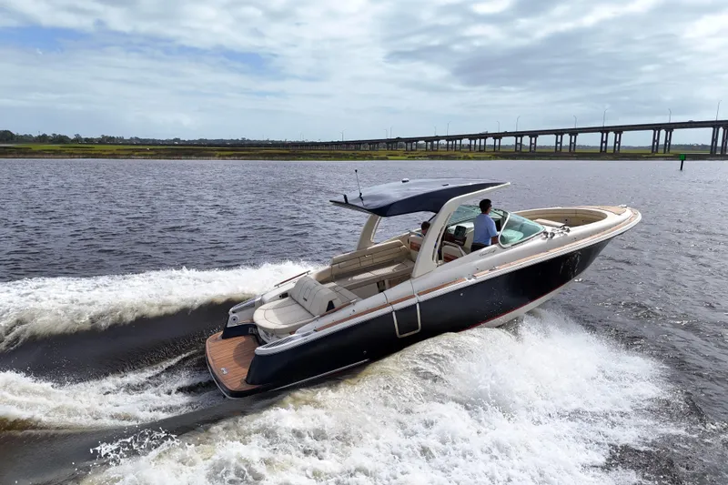 The Chris-Craft Launch 31 GT features a hull length of 9.4 meters, a length at the waterline of 6.9 meters, and a maximum beam of 3.1 meters. It has a draft of 2.8 meters with engines up and 0.56 meters with engines down. The Launch 31 GT's while its waste holding tank capacity is 148 liters. The boat can accommodate up to 15 gallons of people.