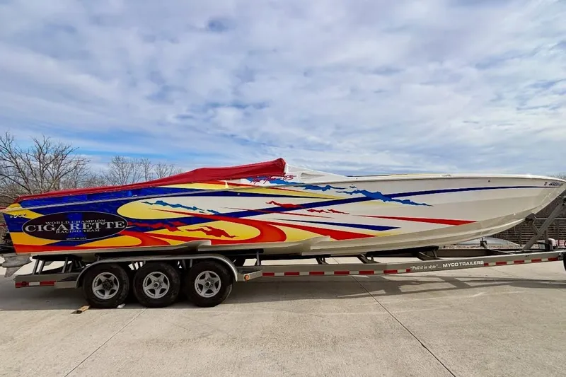 INCOMING 2003 Cigarette Racing 38 Top Gun, Twin Whippled 525's, IMCO SCX drives & Myco trailer. Full listing, pictures and details are forthcoming.