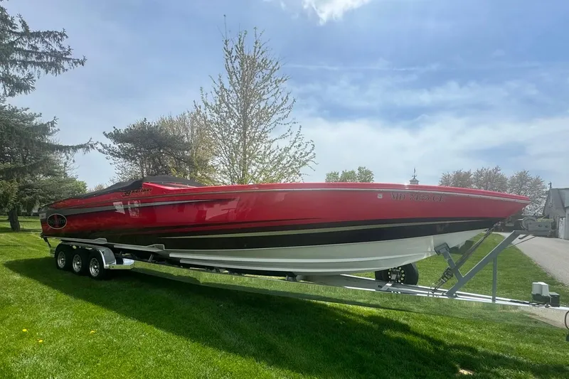 Includes a fully polished and completely refurbished aluminum triple axle trailer with polished aluminum wheels and electric over hydraulic brakes.