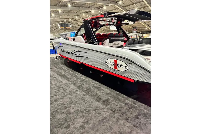 Fully equipped with the Garmin Convenience Package including GMR 24 HD radar, front and rear-facing cameras, ACR searchlight, GOST theft deterrent system, Fusion remote, and JL Audio Pure Plus sound, this Nighthawk SD delivers cutting edge technology with signature Cigarette Racing performance and luxury.
