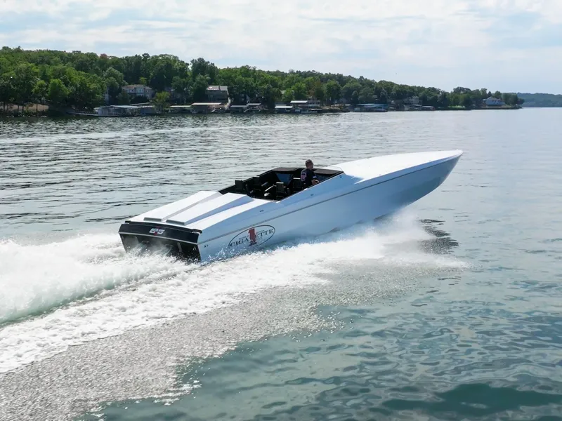 2023 Cigarette Racing 515, Mercury Racing QC4V dual fuel 1100 / 1350 power. M8 drives, (40 fresh water hours on package - 120 mph), current set up in the cockpit is suspension bolster seats and rear storage, factory cockpit configuration available and can be switched back before delivery. Electric cabin door, dual Garmin screens, bow thruster, shore power, battery charger, Fusion head unit, Mercury Racing K Planes, Mercury Racing propellers, black aluminum painted 2023 Myco trailer axle trailer with EOH brakes, matching spare and tool box included. Full service and ready for the water, boat has been maintained by Central Power and Rigger Lake of the Ozarks.