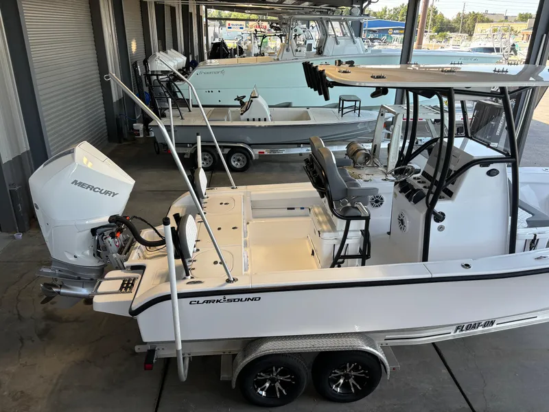 2025 Clark Sound 24 Open Mercury 300 XL DTS, Float On Brand Aluminum Trailer, SS Prop, Hydraulic Steering, Dual Batteries w/disconnect switch, Garmin GPS MAP 8616 XSV,Garmin Transom Mount Transducer GT56UHD-TM 350W, JL Audio Platform Pkg(MM50,6xSpks,600W,2xM6sub,600WSubAmp), Black Powder coated Custom HardTop w/6 rod holders, Black Powder Coated Lean Post, Black powdercoated Rod Holders, Swim Platform w/ladder(Transom Port Mounted), MinnKota I-Pilot112/36/72" w/36V 60ah LITHIUM BATTERY, On-Board Lithium Charger, Stealth Lithium Charger, Raw Water Washdown, Fresh Water Washdown, 6" Jack Plate 6", Upgraded Zipwake Trim Tabs, BolsterCushions F/M/B Gray/White Diamond Stitch, Black Powder coated Transom Backrest w/2 RodHolders, Diamond Stitched upholstery, Leaning Post Tackle Storage Unit, K2 Cooler 70 Qt Summit - Glacier White, Cooler Slide - 70qt K2, Phone Holder/Charger.The core purpose and inspiration behind the inaugural Clark Sound was clear: crafting a high-performance vessel that seamlessly blends fun, quality, and performance. Designed to cater to both passionate anglers and leisure boaters alike, the Clark Sound stands as a testament to our commitment to excellence on the water.