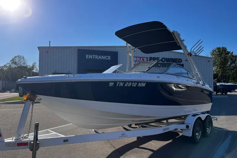Features include a ski tower, bimini top, and dual-axle trailer included in the price, making it easy to tow and store. With 720 hours and a history of being meticulously maintained, this Cobalt has been cared for with pride and is turn-key water-ready.
