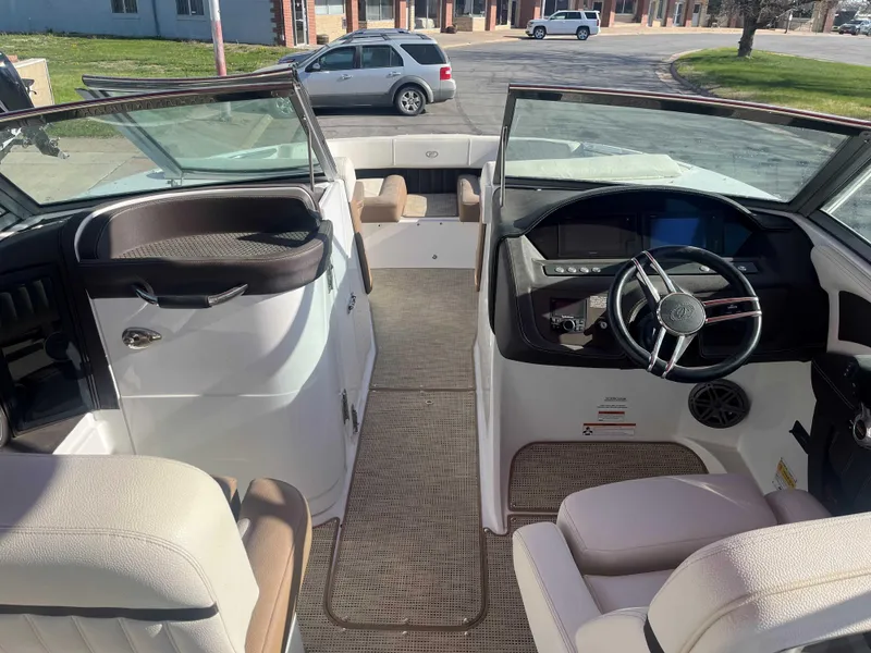 This boat has a 350 Mercury Verado, Bimini Top, Spare Tire, Ski Pole, Swim Platform with lights, Radio, Bilge Pump, 1/2 bathroom with toilet and sink, and Tandem Bunk Trailer only has 96.3 hours on it. Very nice, clean boat.