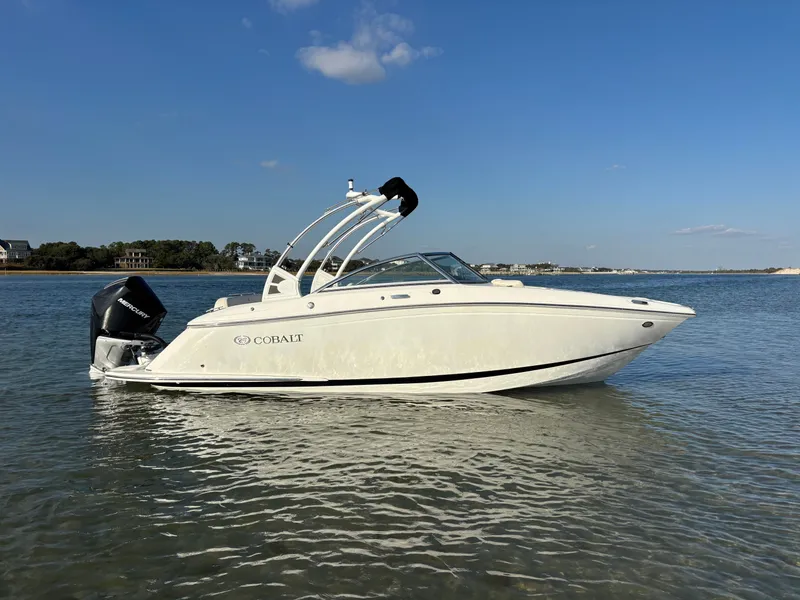 2020 Cobalt 23 SC-OB is powered by Mercury 250hp 4-Stroke Outboard Verado with 325 hours on her engine, that has been recently serviced by a Certified Mercury Service Technician. She has been stored out of the water and under a covered boat lift since new. Review the list of equipment below and scroll through all the pictures.