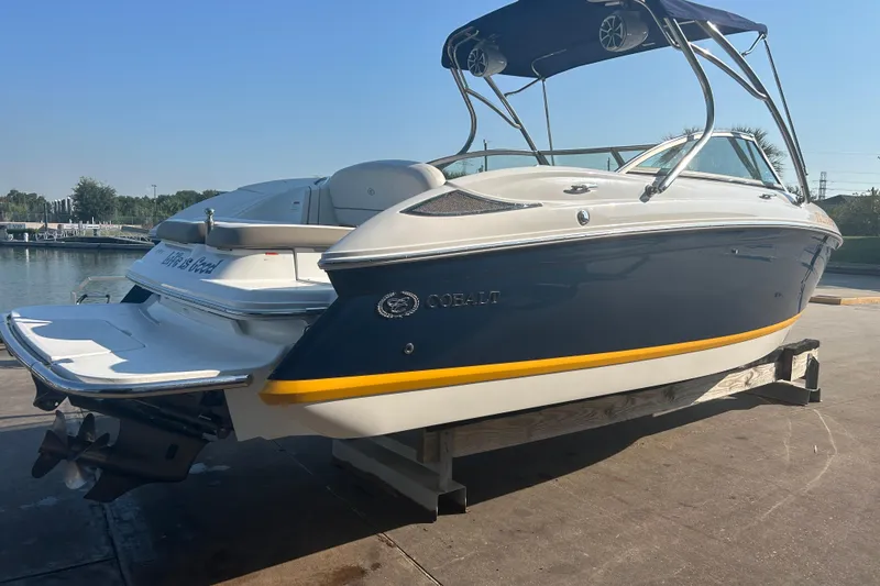 - Exterior Graphics - The look begins with a split gelcoat hull design available in any combination of standard Cobalt gelcoat colors. Then comes the chrome silver WSS hull crystal cap emblems and transom Water Sports Series badge. And for the finishing touch there are three inch black chrome COBALT insignias in an edgy chiseled style.