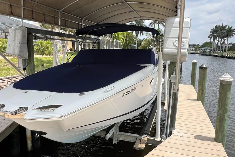 Due to its wide bow shape, the Cobalt 25SC brings the party to the front of the boat, even offering a forward entry ladder for easy access to a sandy beach. Back aboard, the 25SC features the first-class luxury, convenience and versatility of a Cobalt paired with handling capabilities engineered to make the tightest of turns at high speeds. Combined with an outboard engine designed to be exceptionally quiet and smooth, the 25SC offers a ride you can't miss. She has a full head with vacu flush system and sink. The 250hp Verado gives you plenty of power for cruising. She has twin Garmin GPS screens and a new radio. The boat has been kept under cover in a full boat house