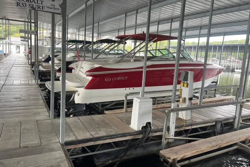 The 2003 Cobalt 282 is a premium performance bowrider that delivers power, comfort, and style in a classic layout. Twin Volvo engines, extended swim platform, and Cobalt's renowned craftsmanship create a perfect combination for entertaining on Lake Ozark. Beautiful Candied Red graphics, upgraded canvas, and stone interior accents make this boat as elegant as it is fun to drive. Fresh-water use and professionally maintained - this Cobalt 282 is ready for its next owner.