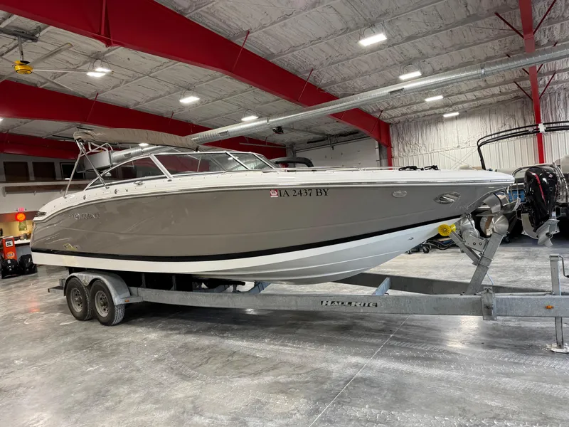 !!! Only 83 Hours !!! 400 HP Big Block !!! This is a very clean 30 foot bow rider equipped with a 8.1 L Volvo penta 400 hp V8, duo prop drive, bow and cockpit cover, bow and cockpit flooring, enclosed head, Bimini Top, walk-through transom, extended swim platform, AM/FM stereo, windlass anchor, and more. Price does not include Trailer but we have used if available for $7900 or New for $9900. Financing and delivery are available. We accept trades.