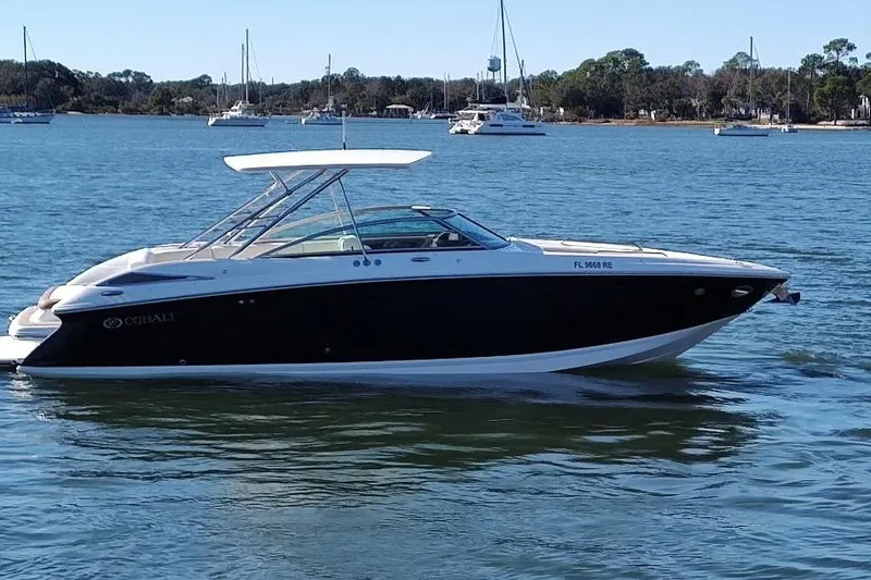 One owner since new, nicely appointed, regular annual service yearly, stored under cover. With its striking black hull color, complemented by Cobalt's Terra Interior, this boat is the envy of everyone watching it breeze by.