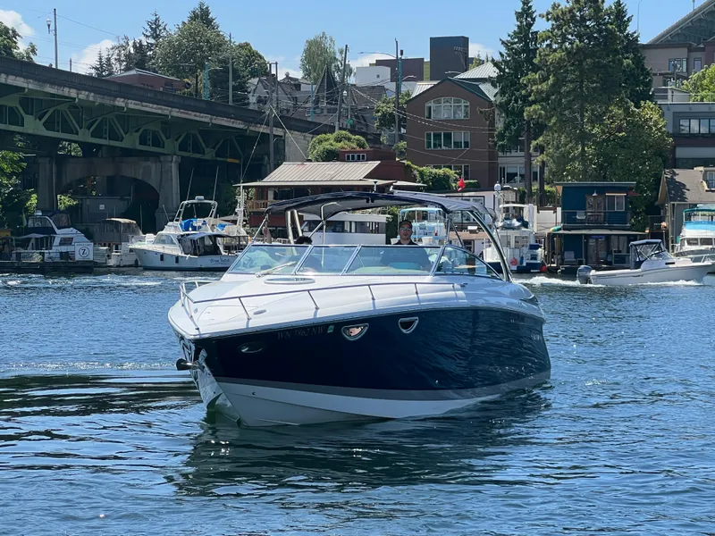 , 2007 Cobalt 323 (Classic Navy/ Sand) Powered by Twin Volvo Penta 5.7 OSXI DP w/ Upgraded Volvo Penta Steel Outdrives! With 1185 Hours, this well-maintained boat is ready to go! Options Include: Dual Stainless Steel Props, Sand Interior, VacuuFlush Head w/Macerator, Premium Sound, Stainless Steel Windshield, Shore Power, Refrigerator, Stainless Steel Bow Rails, Stainless Steel Arch with Navy Bimini/Full Enclosure, Cockpit Tonneau Cover, Windshield Wiper, Stainless Steel Docking Lights, Transom Shower, Transom Lighting, Automatic Fire Extinguisher, and More!!