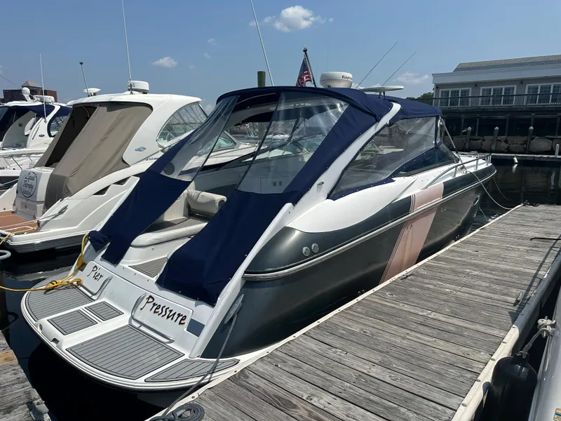 This 36 has a wrapped hull and is powered with Twin 496 Mercruiser engines that have only 410 hrs on them and have always been maintained. She is loaded with a Kohler Generator, Radar, GPS, VHF, AC/Heat, Bow Sunpad, Newer SeaDeck in cockpit and platform, a full enclosure and more.
