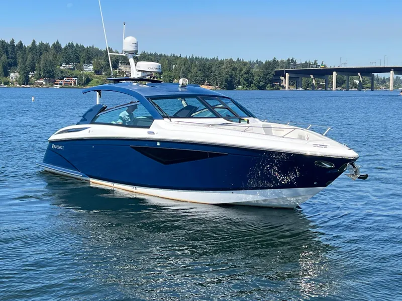 , 2020 Cobalt A36 w/118 hours ready for summer cruising excursions. A one-owner freshwater boat powered by Twin Volvo Penta V8-380 engines, this Cobalt makes island hopping in the San Juans a breeze, not to mention equipped with the Volvo joystick, taking the stress out of docking in wind and current. Features include dual Garmin touchscreen displays, VHF radio, interior LED lighting, interior speaker system, onboard wet head, hydraulic swim platform w/ ladder, seagrass flooring, shorepower, generator, anchor windlass, auto trim-tabs, lower cabin berth, galley w/ sink and more! Stored in water seasonally with outdoor winter storage. Service records available. Perfect for those seeking comfort and style from used boat dealers. Too many options to list, a must see! We invite you to give us a call or visit one of our Seattle Boat Company locations in Seattle, Bellevue, or Lake Tapps and meet our friendly, award-winning team, serving customers since 1984. Explore our extensive selection of new and used boats while enjoying a seamless buying experience. Our customer-focused staff is here to assist you with certified service, moorage, storage, financing options, and more. Discover why we are the top choice in Puget Sound-come shop for boats and schedule a test drive today!