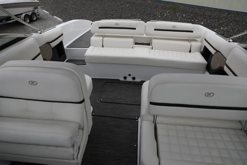 , The 2021 Cobalt R30 combines sporty performance with refined luxury in a sleek 30-foot bowrider designed for inland lake adventures. Powered by twin 300 hp engines with joystick control, it offers smooth, confident handling and precise maneuverability. The deep-V hull ensures a comfortable ride, while the spacious cockpit features premium seating, ample storage, and upscale finishes throughout. Equipped with advanced helm controls and high-end technology, the R30 balances comfort, style, and versatility, making it ideal for entertaining, cruising, and watersports on the water.