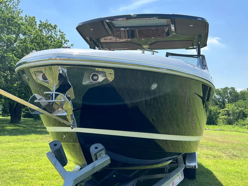 Step aboard the Cobalt R31 and discover a world of premium features designed to enhance your boating experience. The interior boasts a sophisticated Caramel and Carbon color scheme, complemented by a Black Leather/SS steering wheel for a touch of elegance. The Sof-Trac Mat in Caramel/Ebony adds comfort and style underfoot, while the hydraulic swim platform with a flip-down step makes water access effortless and enjoyable.Enjoy ambient evenings with swim platform transom lighting, creating a welcoming atmosphere for sunset gatherings or late-night swims. The HK Plat Sound system, complete with transom and sound bar hard top speakers, delivers crystal-clear audio throughout the boat, perfect for entertaining guests or relaxing with your favorite tunes. The rear-facing camera enhances safety and convenience, providing clear visibility when docking or maneuvering in tight spaces.For added comfort, the Head Vac Thetford offers a modern and hygienic restroom solution, ensuring you and your guests can enjoy extended trips without compromise. The battery maintainer/charger keeps your electrical systems running smoothly, so you're always ready for your next adventure.