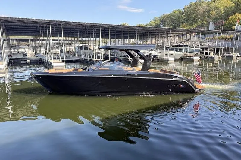 The 2026 Cobalt R31 Surf brings luxury and performance together in a sleek, powerful design. Twin 350 HP Volvo Joystick drives deliver precision control and smooth power, while a hydraulic swim platform and Harman Kardon audio system enhance every moment on the water. Rich Ebony styling, Caramel interior tones, dual 12-inch glass displays plus a passenger Garmin 743 create a truly premium Lake Ozark experience. Every inch of this R31 Surf reflects Cobalt's commitment to craftsmanship and innovation.