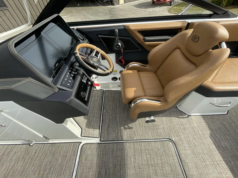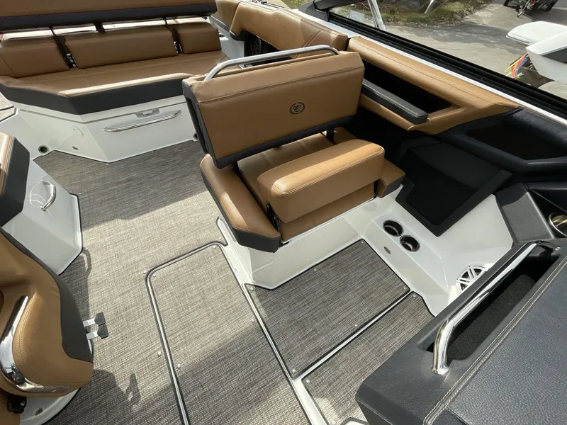 Powerful Performance: Equipped with a robust engine lineup, the boat delivers impressive acceleration and smooth handling, ideal for watersports and cruising.