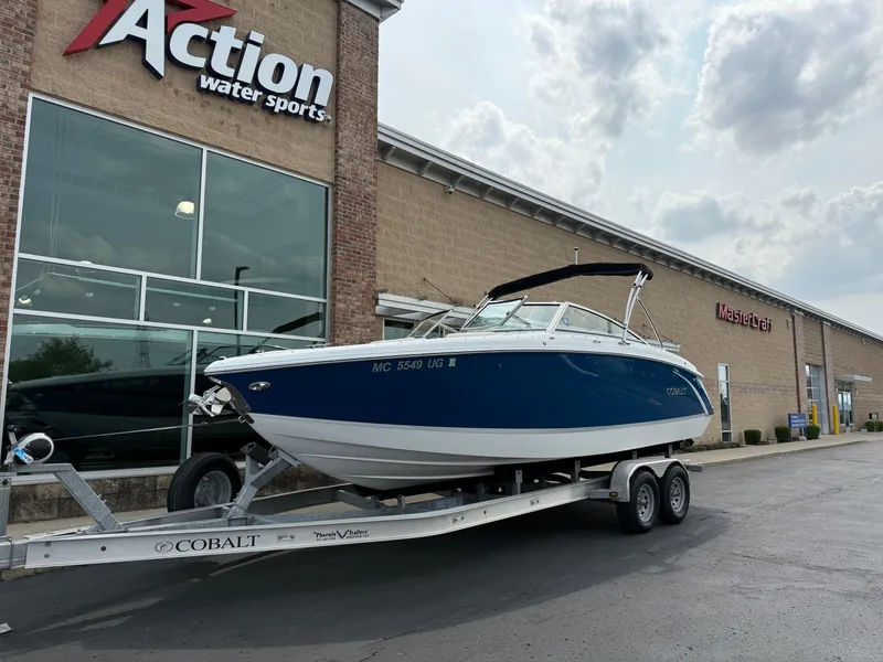 2019 Cobalt R5, 2019 Cobalt R5 with 408 hours on Volvo 350 engine. The trailer is not included, but we have new trailers available for purchase. Recently inspected including compression check, charging system and lake test. Contact Action Water Sports for more information! Top Features of The 2019 Cobalt R5: Volvo Penta V8‑350CE‑G engine with 350hp Wraparound seating and convertible backrest Walk-thru transom and extended swim platform Premium features: LED lighting, underwater lights, docking lights, dual battery switch, windlass anchor system, head with Porti-Potti, and more! 25' 8" length with seating for 14 Experience This Boat Only at Action Water Sports This well-kept 2019 Cobalt R5 is available now at our Hudsonville, MI location. Let our team show you why the R5 is the perfect boat to enjoy life on the water.