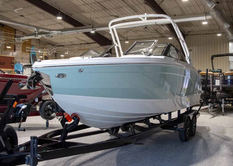 The sleek and smooth R6 is the ultimate sport runabout. It capitalizes on increased space for passengers while maintaining its sporty performance and responsive handling out on the water. The R6 offers many new and exciting features, including increased storage for watersports gear, enhanced audio output, and wrap-around yacht-style seating that elevates you and your guests experience as it whisks you away from the ordinary. 2026 Cobalt R6 2026 Mercruiser 8.2L MAG HO with Bravo III Drive ETC DTS 2026 Custom-Built Cobalt Tandem Axle Trailer Installed Options: White and Light Sage Gelcoat Summit / Frost Interior Silver Ash Seagrass Snap-in Flooring Sundeck Convertible Lounger; Lounger Converts from standard seating configuration to an aft facing sunpad with backrest, or aft facing rumble seat. Dual Glass Garmin 743 Cockpit Wireless Phone Charger with Holder Bluetooth Sound System w/ 6 Speakers Stainless Steel Docking Lights Dual Battery Switch Battery Maintainer/Charger Head with Porta Potti Windlass, All Chain with Anchor Swim Platform w/ Flip-Down Step Automatic Fire Extinguisher System White E2 Arch with Bimini Mooring Cover