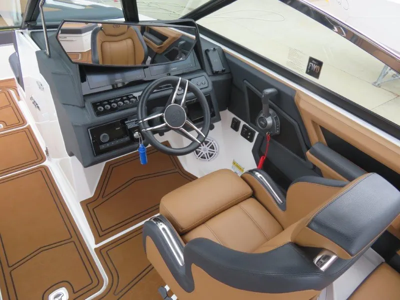 This is a LIKE NEW R6 Surf that has been Dry Stored since new in our building on the TN River. It has only 75 hours on a Volvo 380 hp FWD Drive. Options include Electric Tower with Bimini Top, Speakers and Racks; On Board Charger; Bow Filler Cushion; Phone Charger; Glass Cockpit with Dual 8610 Screens; Windlass; Sof-Trac Cockpit Flooring; Premium Sound System; Underwater Lighting; Bow & Cockpit Covers; NO TRAILER!!