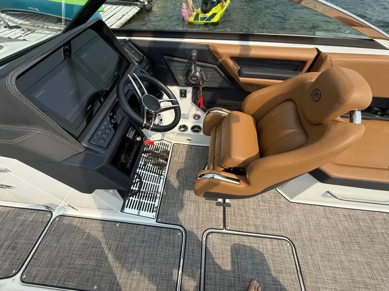 2024 Cobalt R8, Powered by a commanding Volvo V8 380hp engine, this beauty propels you across the water with breathtaking speed and unmatched performance. The dual props provide precise control and enhance efficiency, ensuring every ride is as exhilarating as it is efficient. Bayside Blue exterior, elegantly complemented by the Cabernet boot strip. This combination not only exudes sophistication but also reflects your distinct style and refined taste. The cobalt blue waters have finally met their match in the sleek design of the Cobalt R8. The folding arch in pristine white, coupled with the ebony bimini, sets the stage for your aquatic escapades. Lounge in comfort on the Caramel & Carbon interior seating, surrounded by the sea grass flooring that adds a touch of opulence to every step. The soft-trac mats on the swim platform provide a secure footing, whether you're enjoying water activities or simply soaking up the sun. The solid teak dinette table invites you to indulge in culinary delights while surrounded by the breathtaking views of open waters. Stainless steel docking lights not only enhance safety during nighttime maneuvers but also accentuate the Cobalt R8's timeless elegance. The electric porcelain head ensures convenience and comfort for all aboard, while the wireless phone charger/holder keeps you connected without interruption. Navigate with confidence using the dual Garmin glass cockpit screens, providing you with real-time information and navigation assistance. The LED interior accent lighting creates an inviting atmosphere as day transitions to night, seamlessly blending modern technology with classic elegance. With trim tabs and indicators, you have full control over your ride's dynamics, ensuring a smooth and comfortable journey. Don't miss your chance to own the 2024Cobalt R8, where performance meets elegance and innovation meets tradition. Contact us now to schedule your personal viewing!
