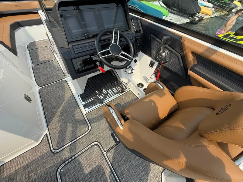 2024 Cobalt R8, Powered by a commanding Volvo V8 380hp engine, this beauty propels you across the water with breathtaking speed and unmatched performance. The dual props provide precise control and enhance efficiency, ensuring every ride is as exhilarating as it is efficient. Bayside Blue exterior, elegantly complemented by the Cabernet boot strip. This combination not only exudes sophistication but also reflects your distinct style and refined taste. The cobalt blue waters have finally met their match in the sleek design of the Cobalt R8. The folding arch in pristine white, coupled with the ebony bimini, sets the stage for your aquatic escapades. Lounge in comfort on the Caramel & Carbon interior seating, surrounded by the sea grass flooring that adds a touch of opulence to every step. The soft-trac mats on the swim platform provide a secure footing, whether you're enjoying water activities or simply soaking up the sun. The solid teak dinette table invites you to indulge in culinary delights while surrounded by the breathtaking views of open waters. Stainless steel docking lights not only enhance safety during nighttime maneuvers but also accentuate the Cobalt R8's timeless elegance. The electric porcelain head ensures convenience and comfort for all aboard, while the wireless phone charger/holder keeps you connected without interruption. Navigate with confidence using the dual Garmin glass cockpit screens, providing you with real-time information and navigation assistance. The LED interior accent lighting creates an inviting atmosphere as day transitions to night, seamlessly blending modern technology with classic elegance. With trim tabs and indicators, you have full control over your ride's dynamics, ensuring a smooth and comfortable journey. Don't miss your chance to own the 2024Cobalt R8, where performance meets elegance and innovation meets tradition. Contact us now to schedule your personal viewing!