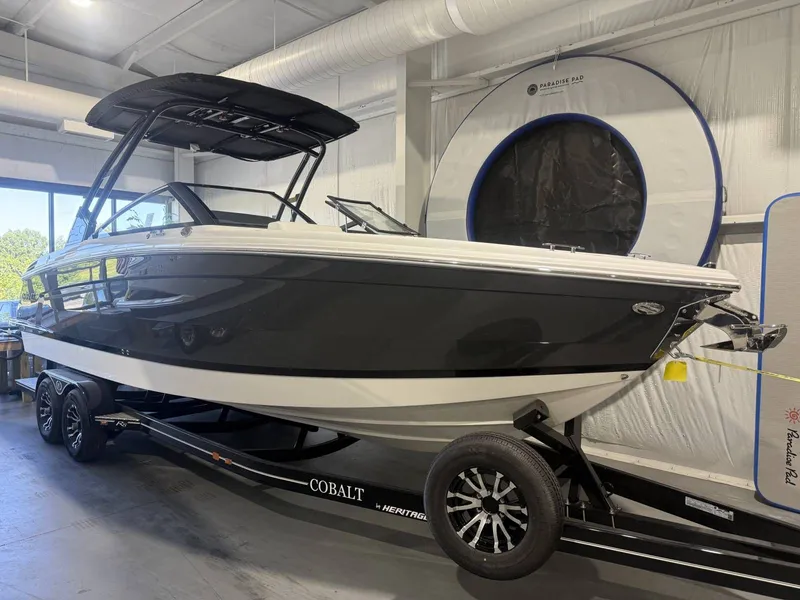 2025 Cobalt R8 , 2025 Cobalt R8 - Luxury Bowrider with Volvo 430hp V8⚓OverviewExperience unmatched performance and luxury with the 2025 Cobalt R8, powered by a Volvo 430hp V8 engine. This premium bowrider blends cutting-edge technology, comfort, and style, making it one of the most sought-after boats in its class. Whether you're cruising, entertaining, or enjoying watersports, the Cobalt R8 delivers exceptional versatility and elegance.⚓Key Features & Upgrades Engine: Volvo 430hp V8 Custom Color: 3-Color Graphite Gray with Rich Ebony accents Electronics: Dual Garmin 8610 Glass Cockpit Premium Sound System: With transom speakers & remote Seating: Electric adjustable seat, Summit/Frost interior Comfort: Bow filler cushions, dinette table with teak accent, leather steering wheel upgrade Convenience: Wireless phone charger/holder, battery maintainer/charger, tool kit ⚓ Premium Options & Luxury Upgrades Folding arch with rotating shade (Ebony) LED interior accent lighting (RGB) Seagrass silver ash flooring Sof-Trac mats (gunwale step & swim platform) Docking lights - stainless steel Automatic fire extinguisher system Windlass with all-chain anchor Transom shower & tilt switch Trim tabs with indicators Storage compartment lighting - LED Mooring cover for folding arch ⚓Additional Features Stainless steel props (FH5 Volvo) Obsidian windshield Extended swim platform - Rich Ebony Fender clips with line (4) Dual battery switch with ACR EPA fuel tank (86 gal) California compliance package ⚓Why Choose the 2025 Cobalt R8? The Cobalt R8 is designed for boaters who demand power, luxury, and innovation. With a 430hp Volvo V8, advanced navigation, and premium upgrades throughout, this model is ideal for families, entertainers, and watersports enthusiasts alike.