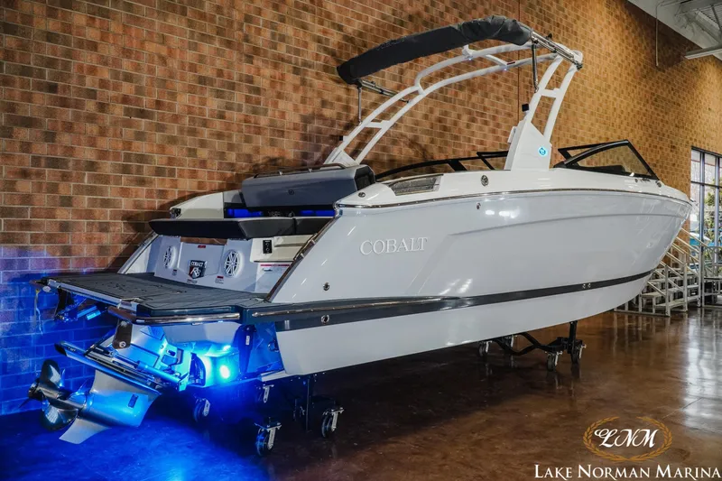 Introducing the stunning 2026 Cobalt R8, a new bowrider that epitomizes luxury and performance. With an overall length of 27.83 feet, this vessel is designed for both comfort and agility on the water. Its deep vee hull shape, crafted from durable fiberglass, ensures a smooth and stable ride, making it perfect for both leisurely cruising and thrilling adventures. Equipped with an inboard/outboard engine and stern drive configuration, the R8 promises an exhilarating experience on the water. The thoughtful design includes ample space for relaxation and entertainment, making it an ideal choice for gatherings with family and friends. The Cobalt R8 is not just a boat; it's a lifestyle choice for those who appreciate quality and elegance. With its modern features and sleek aesthetics, this bowrider is ready to make waves and create unforgettable memories on the water.