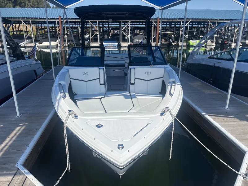 2025 Cobalt R8 Surf, The 2025 Cobalt R8 Surf combines luxury craftsmanship with proven surf technology for uncompromising performance. Designed around Cobalt's surf hull, the R8 Surf integrates Volvo Penta Forward Drive with Surf Gate™ and a touchscreen-controlled ballast system to deliver clean, customizable waves at the push of a button. At the helm, a dual Garmin glass cockpit provides intuitive control, while interior refinements include convertible seating, a spacious aft sunpad, and deep storage solutions. Built to maximize precision handling and surf versatility, the R8 Surf sets the standard in its class.